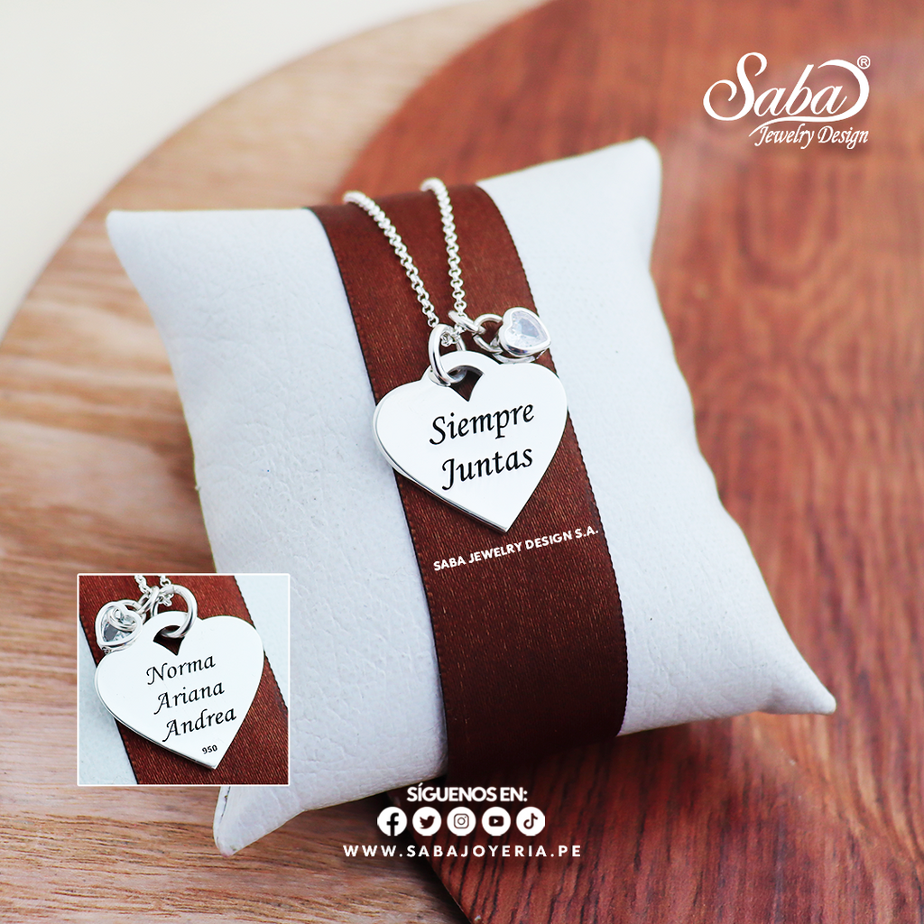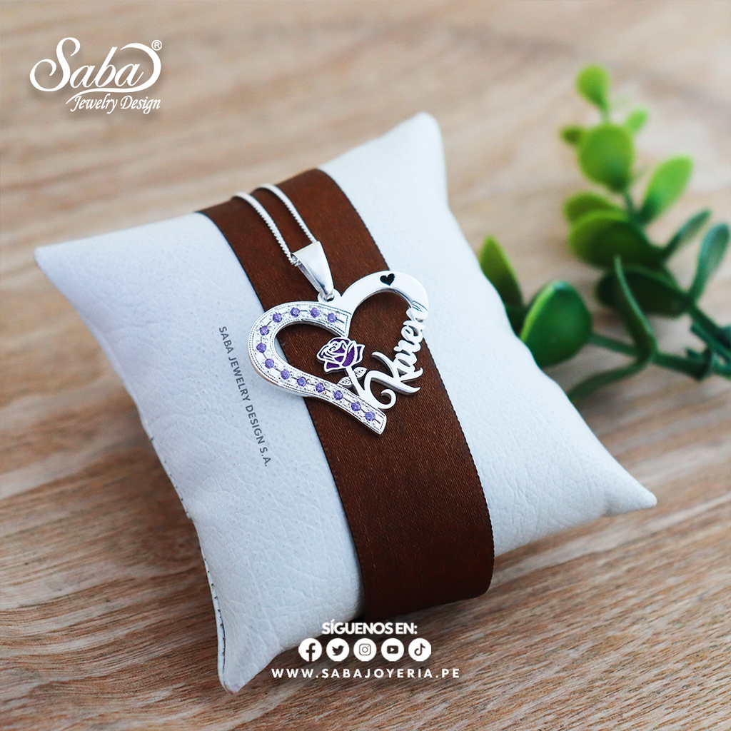 Collar Corazón Rosa con Circones Morados - Plata Fina