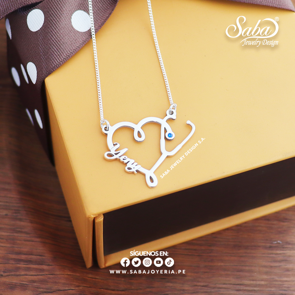 Collar con Nombre Personalizado Estetoscopio - Plata Fina - Dama