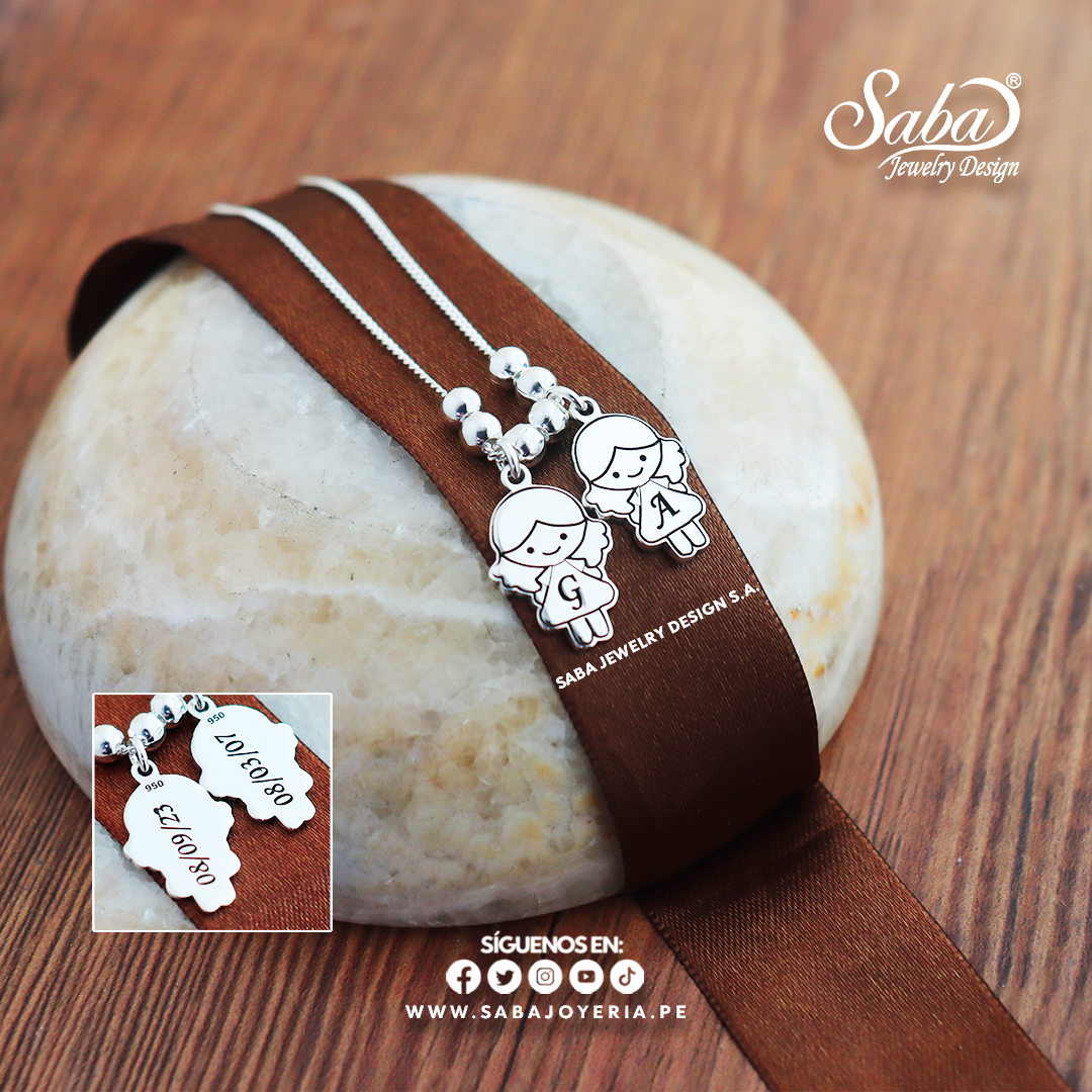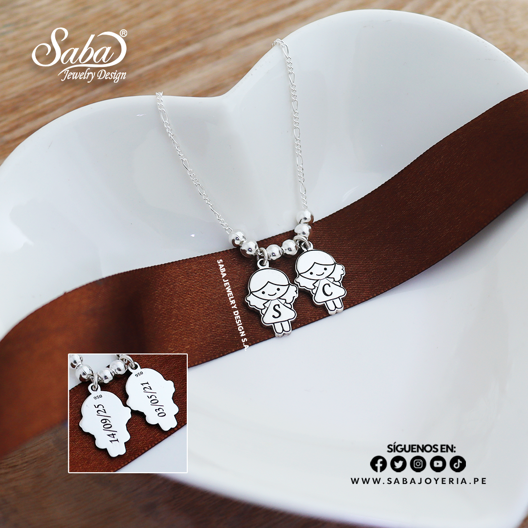01 Collar para Mamá modelo 2 hijas mujeres elaborado en plata fina
