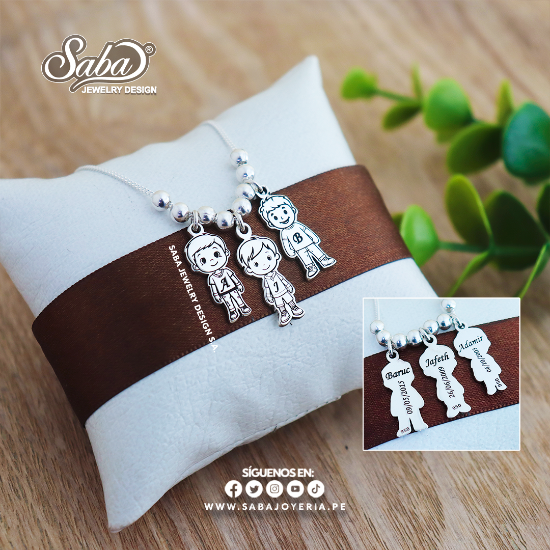 01 Collar para Mamá modelo 3 hijos varones elaborado en plata fina
