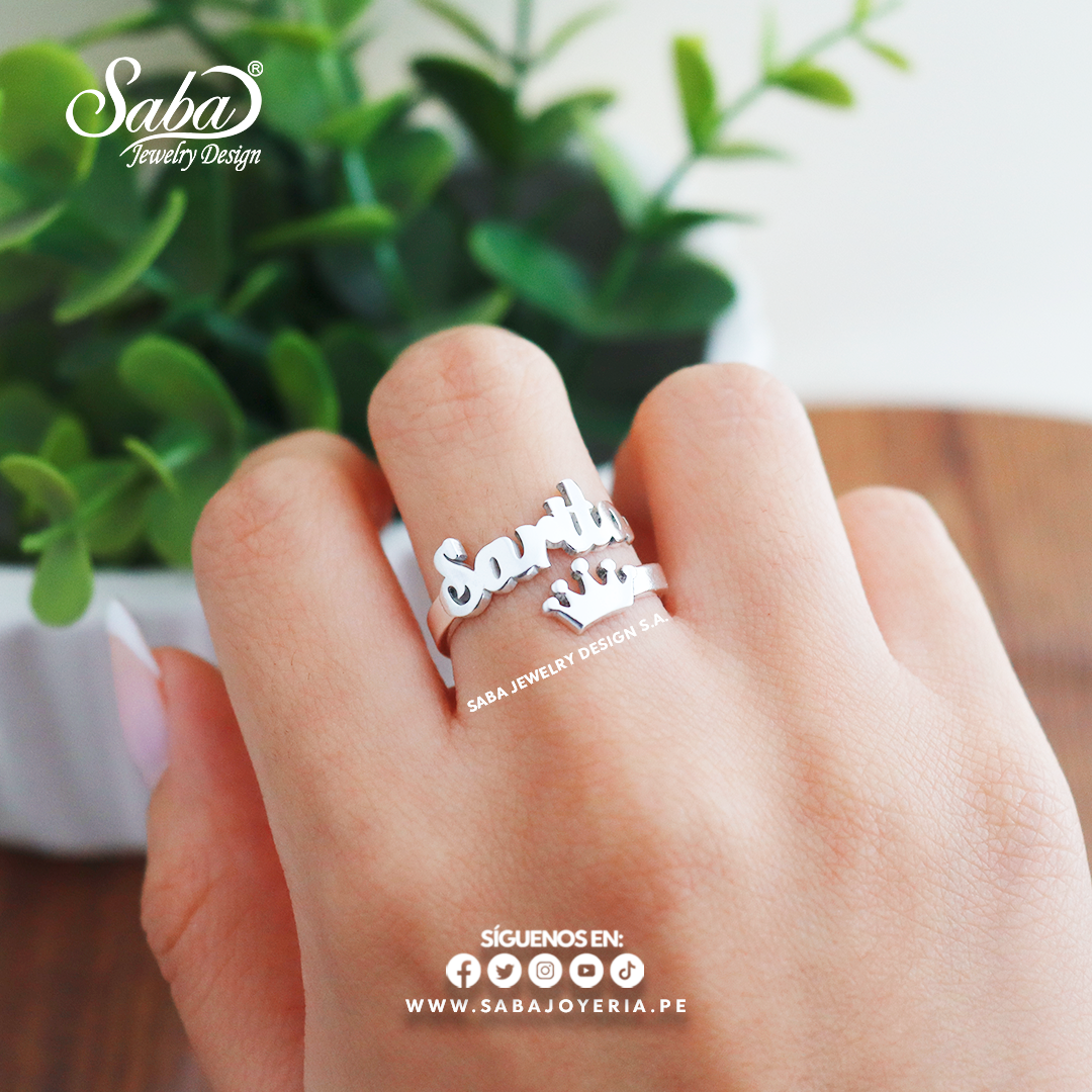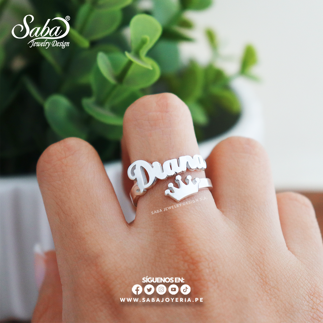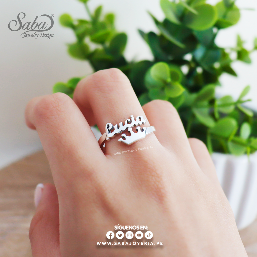 Anillo con nombre personalizado elaborado en plata fina - Modelo corona