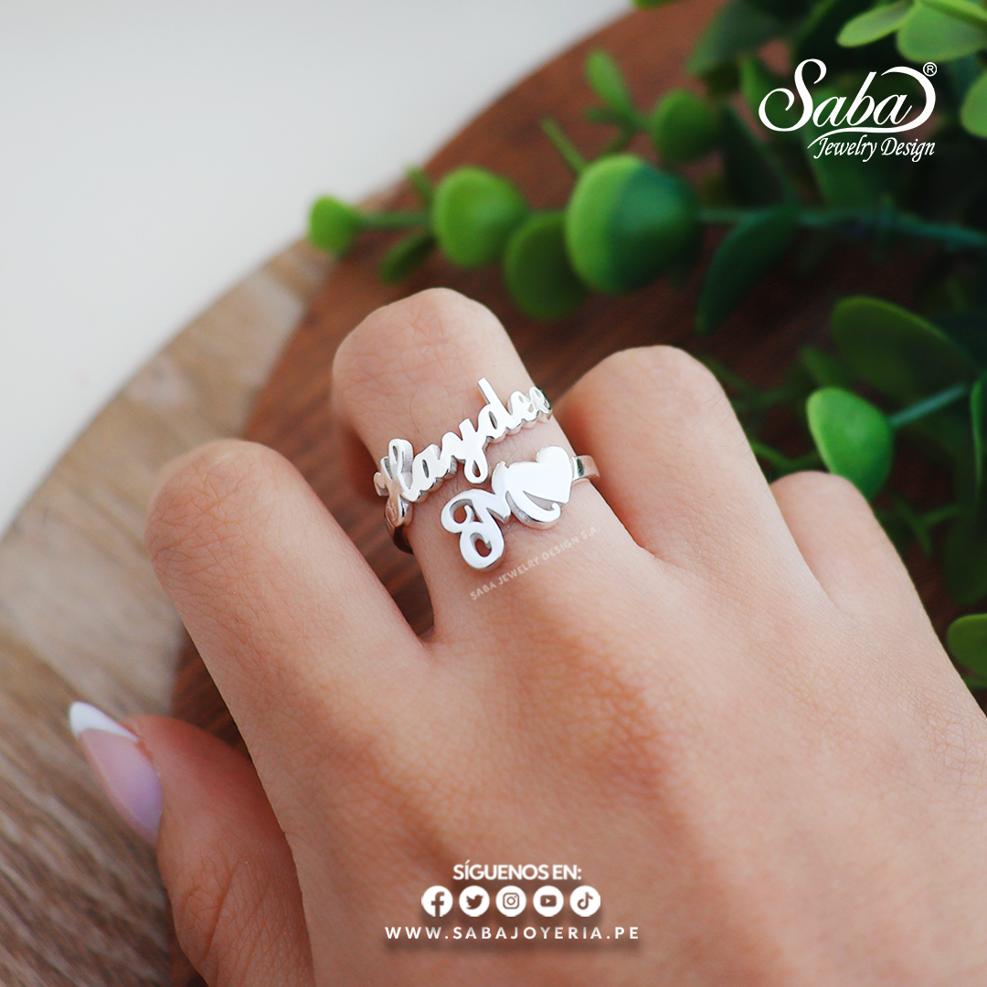 Anillo con nombre personalizado elaborado en plata fina - Modelo inicial