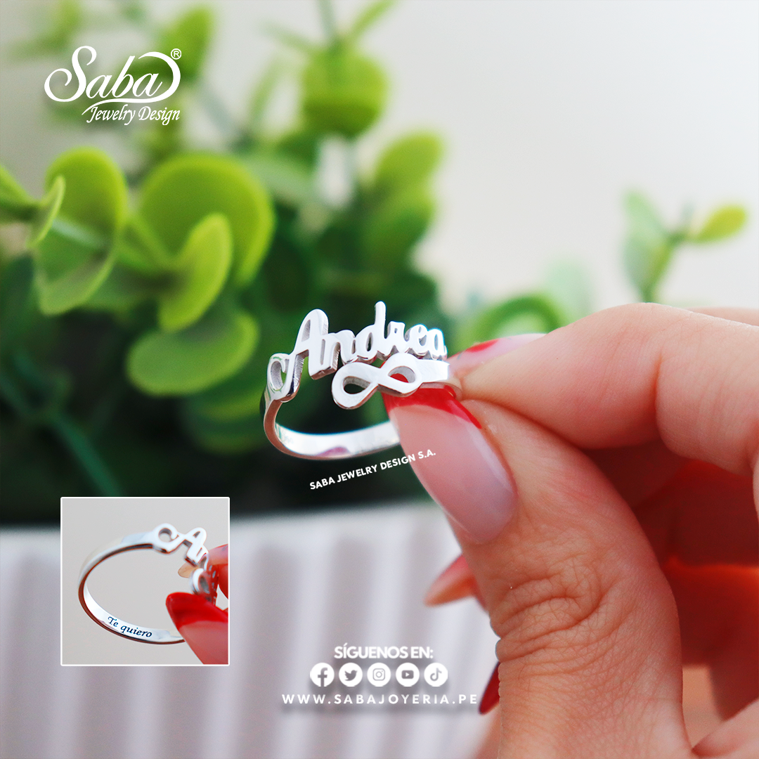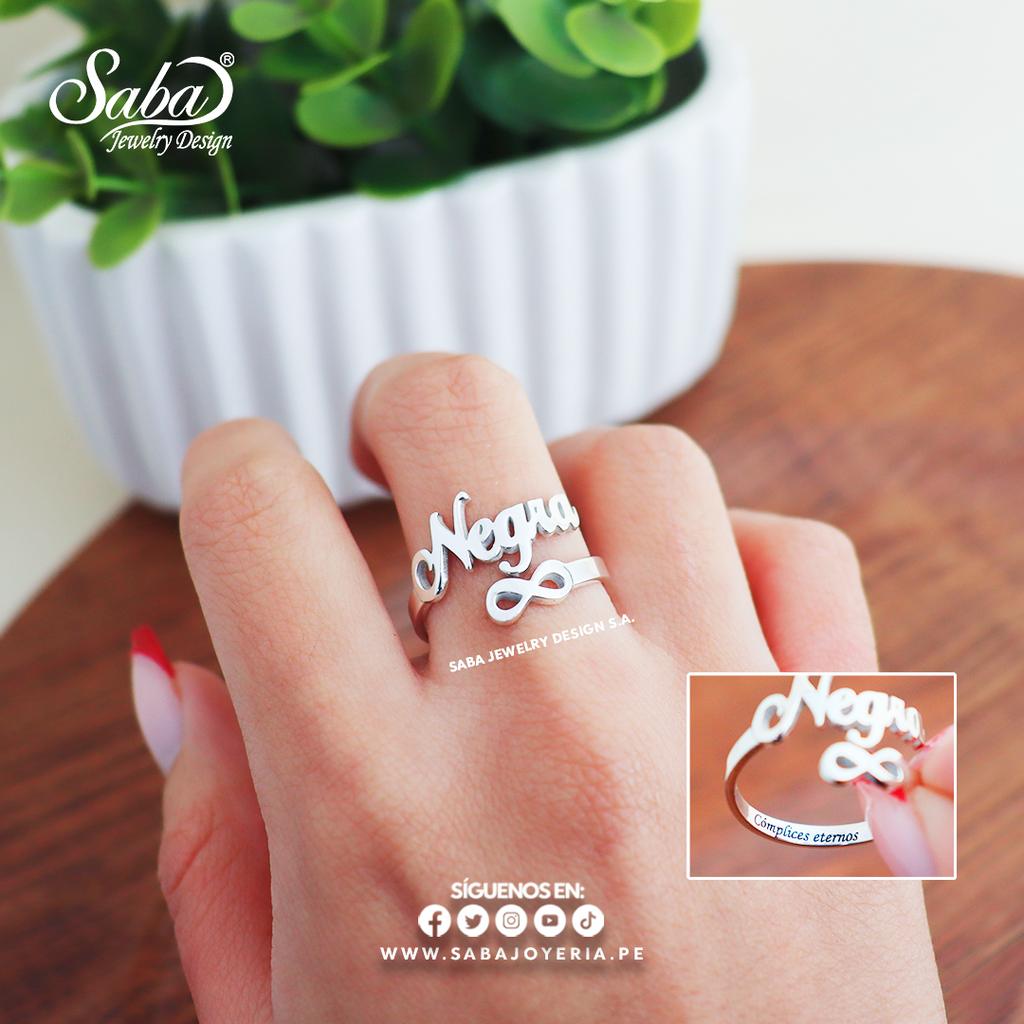 Anillo con nombre personalizado elaborado en plata fina - Modelo infinito