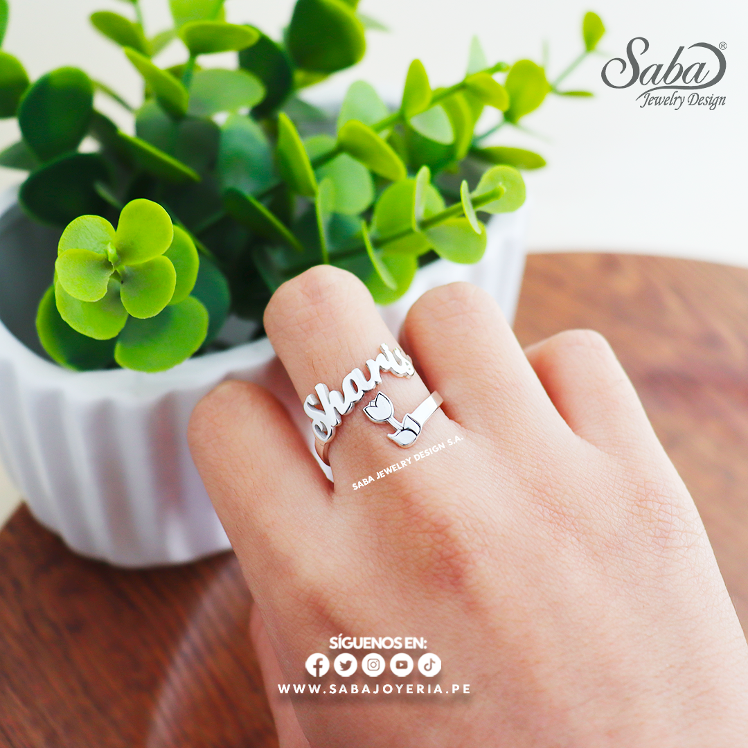 Anillo con nombre personalizado elaborado en plata fina - Modelo tulipán