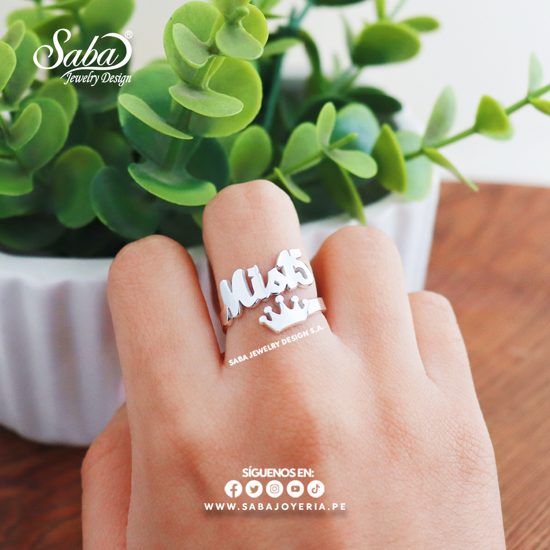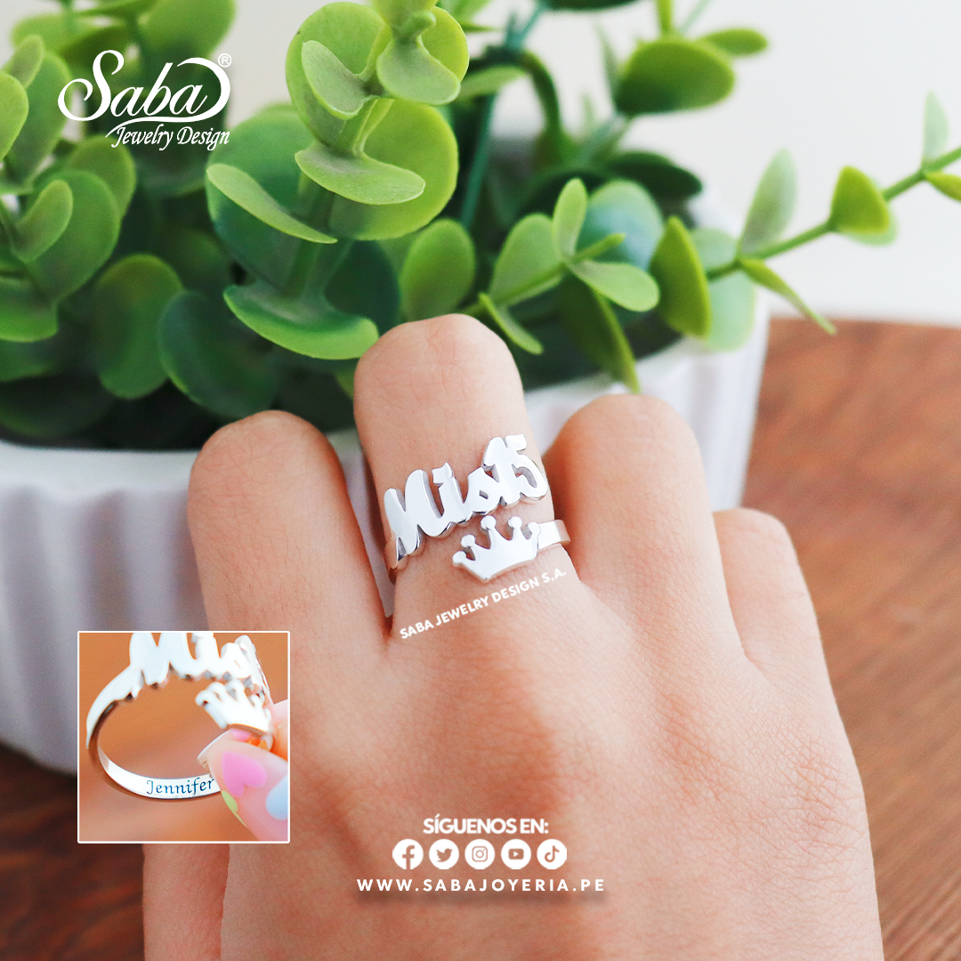 Anillo con nombre personalizado elaborado en plata fina - Modelo Mis 15 Años