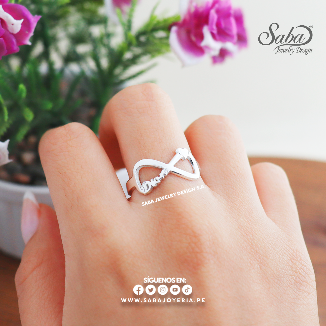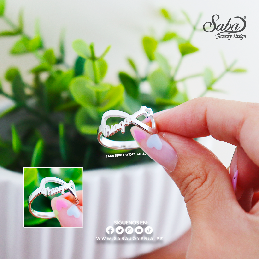 Anillo Infinito - 1 Nombre - Plata Fina está en espera y se enviará tan pronto como vuelva a estar en stock