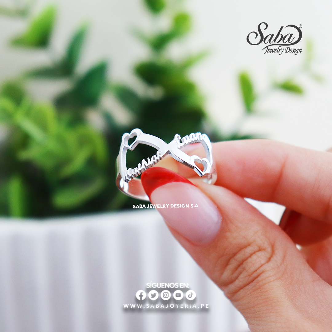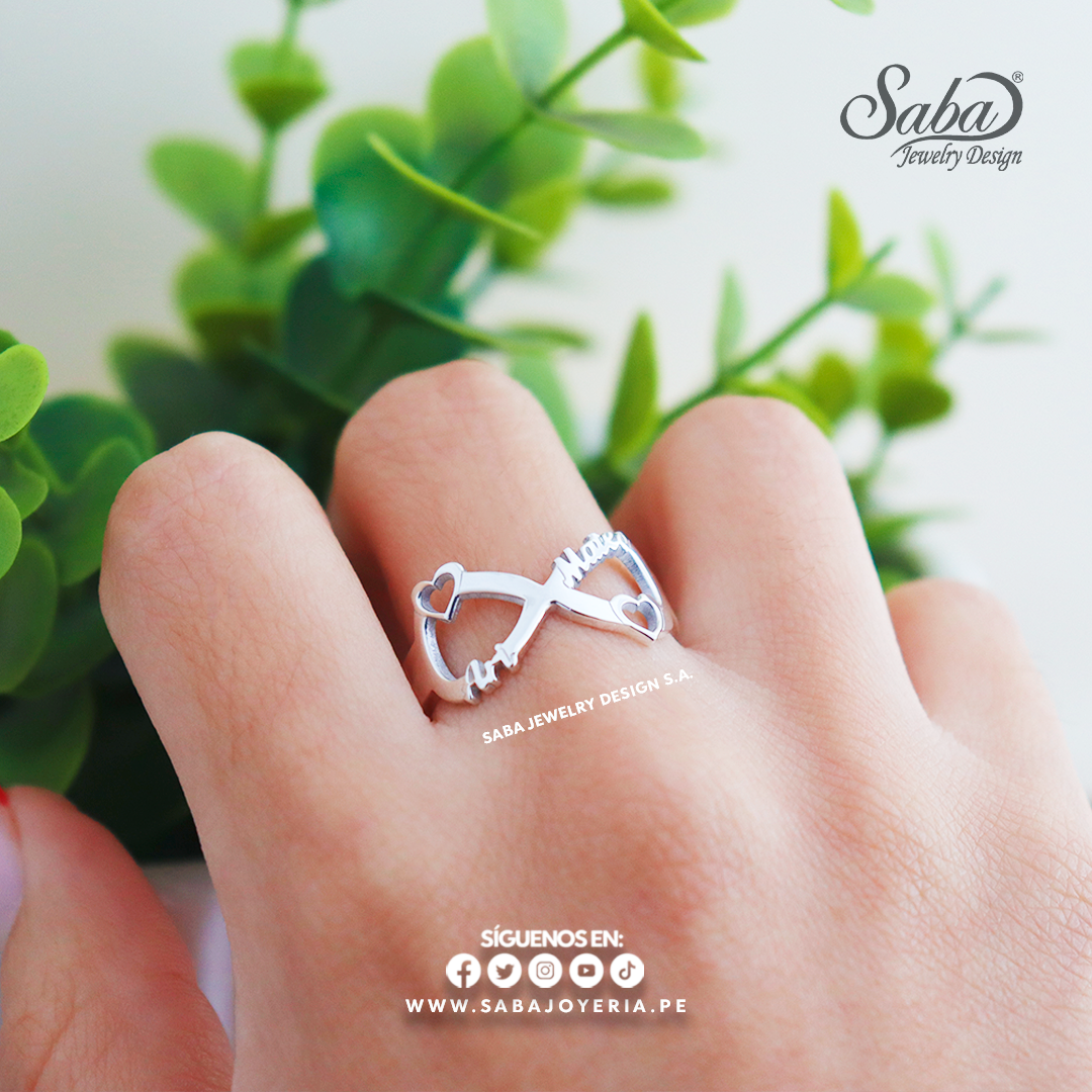 Anillo Infinito - 2 Nombres - Plata Fina está en espera y se enviará tan pronto como vuelva a estar en stock