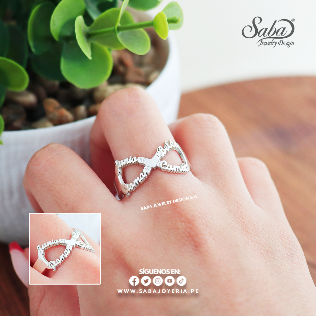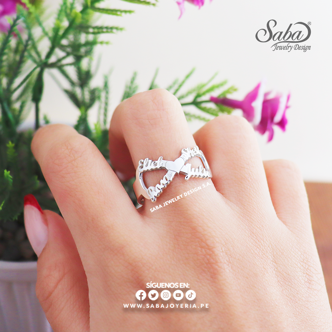 Anillo Infinito - 4 Nombres - Plata Fina está en espera y se enviará tan pronto como vuelva a estar en stock